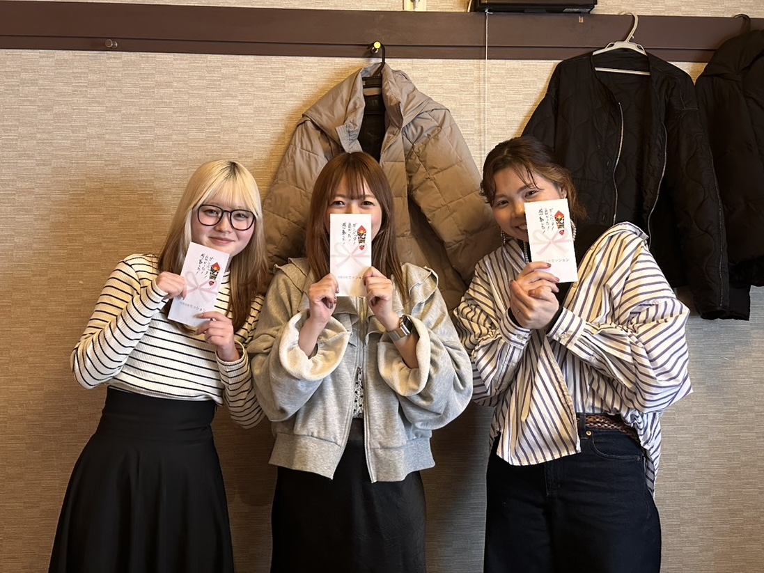 2026.1.27 SESSION pago! 新年会 吉田 麻奈 こんばんは セッションでの新年会は、毎年恒例の会議からの親睦会です 今季前半の振り返りや後期の取り組みを発表したり、みんなで考えを共有したり、半年の優秀社員の表彰も行われました 今回表彰されたのは、このスタッフです またこれから半期、お客様に喜んでいただけるようにみんなで取り組んでいきます 皆様のご来店心よりお待ちしています